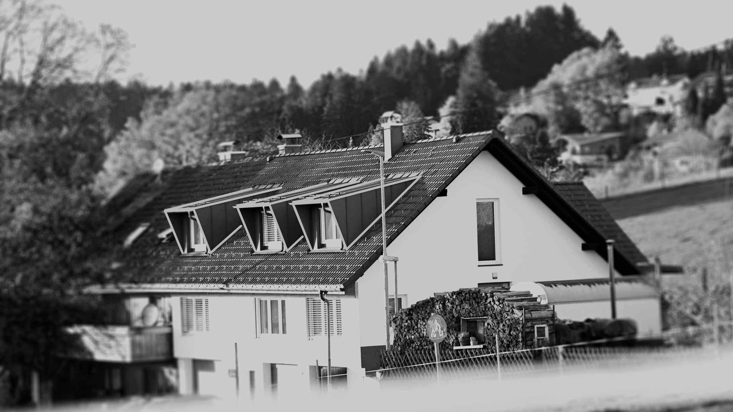 Auch wenn die Fenster-, Gaubeneinteilung vom geplanten gleichmäßigen Rhythmus abweichen, die markanten Dachgauben mit ihrer großzügigen Überdachung sind der Hingucker!